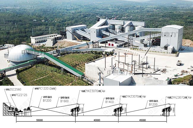 配置方案:PCZ2125重型錘式破碎機+PC220整形破*2+2YKZ3070振動篩*12+ZGC2560給料機