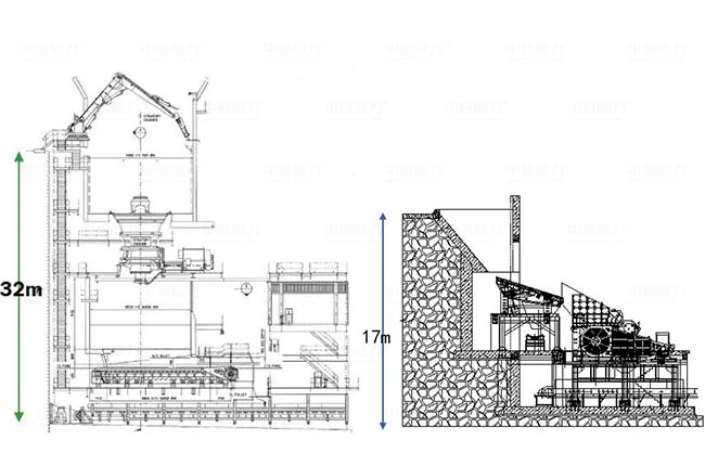 傳統(tǒng)旋回破和臥式旋回破基礎(chǔ)建設(shè)對比圖
