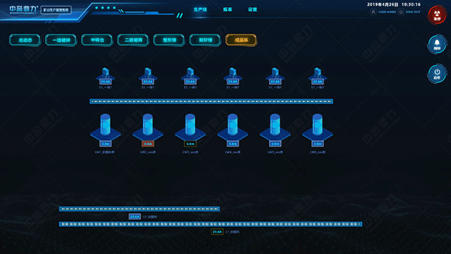 3、石料生產線生產能力及各類規格的成品石料的產量、日/周/月累計產量、裝置工作負荷、運行時間等數據的實時監測解析;