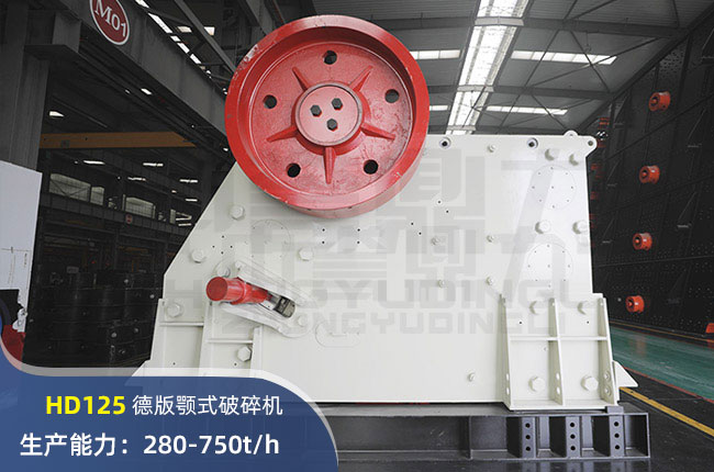 HD125顎式破碎機的時產量在280-750噸左右,日產量在2240-6000噸左右,屬于中型的破碎設備,很適合一些產量不時產750噸左右的碎石生產線。
