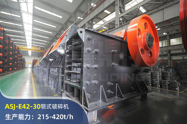 ASJ-E42-30顎式破碎機進料口尺寸1070×760mm,進料粒度≤500mm,出料大小≤100mm,電機功率110kw,時產量在420左右。