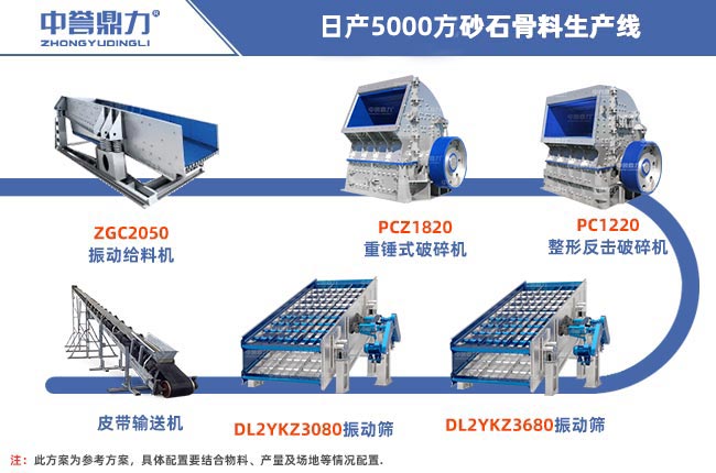 日產5000方石料生產線相當于日產量7500噸,按照每天工作八小時就是時產900噸左右,已經是屬于比較大產量的生產線了。