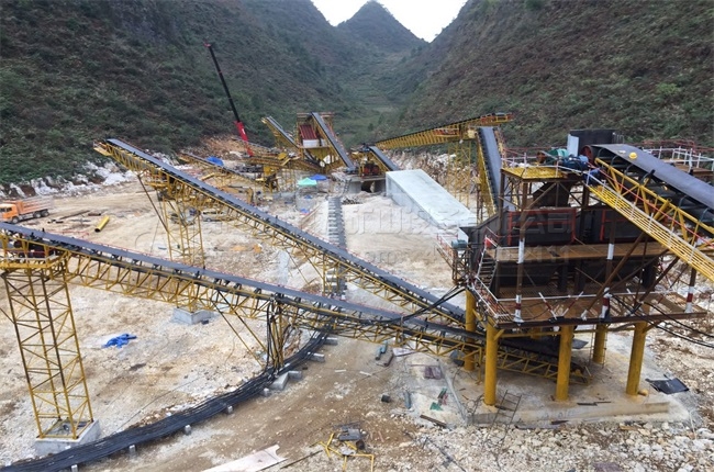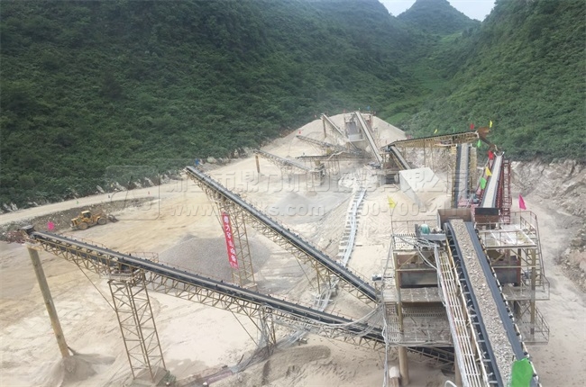 貴州平塘縣年產100萬噸機制砂生產線是17年投產,時產量500噸左右,主要加工石灰石,主要設備包括給料機、重錘式破碎機、輕型振動篩、雙轉子制砂機等,具體設備型號配置如下: