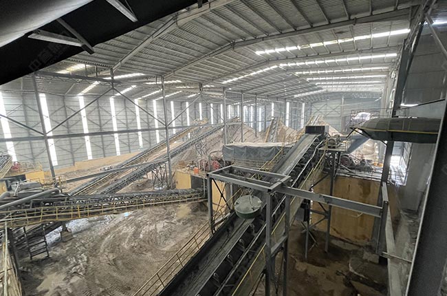 設備配置:振動給料機、錘式破碎機、雙腔硬巖破碎機、振動篩、洗砂機等