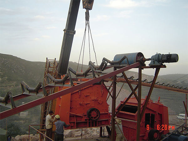 時產150-200噸石灰石反擊式破碎機內部結構受損,零件掉落,也可能出現堵料現象。