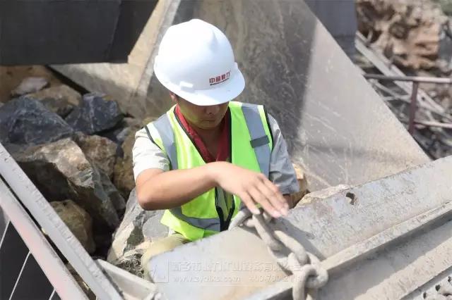 在生產(chǎn)線現(xiàn)場(chǎng),中譽(yù)鼎力安裝工程師針對(duì)唐總反映的近幾天進(jìn)料時(shí)有點(diǎn)卡料的情況,及時(shí)檢查破碎機(jī)和皮帶機(jī)運(yùn)行狀態(tài),查看原材料,現(xiàn)場(chǎng)為客戶(hù)解決問(wèn)題。
