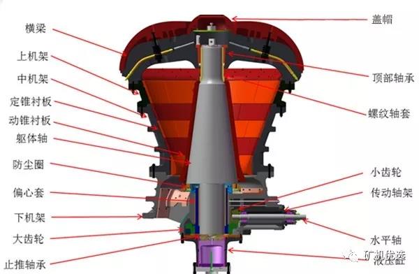 因旋回破產(chǎn)能高,破碎比大,一般大型選礦廠會(huì)選用旋回破作為段破碎,粘性物料除外。