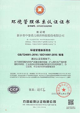 環(huán)境管理體系認證證書