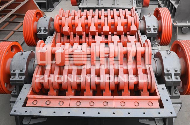 兩個轉子相對運轉帶動破碎腔內物料相互撞擊,物料反復碰撞形成了石料在破碎腔內的自粉碎,大地了錘頭及部件的消耗。