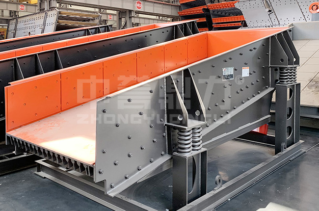 中譽鼎力礦山用給料機(jī)采用的篦條設(shè)計,可以防止物料的堵塞,并且起到對物料的初級篩選,進(jìn)而提高生產(chǎn)量。