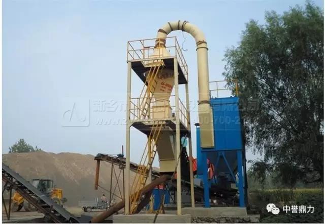 在成品砂生產線終加工成品砂的階段,將石粉與成品砂進行分離,通過的風力實現成品砂與石粉分離開來,它是以流體力學理論為基礎,通過風選使分級區氣流速度變換來控制所選粉料粒度大小,使石粉在懸浮狀態下被分成砂與細粉,從而達到粉與砂分離,分離出來的石粉可以再次進行利用,例如可以應用到橡膠、飼料、水泥、涂料等多個行業中,從而避免了石粉隨意堆積現象的產生。