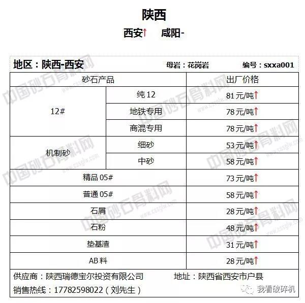 陜西地區:西安砂石價格普遍上調3元/噸。