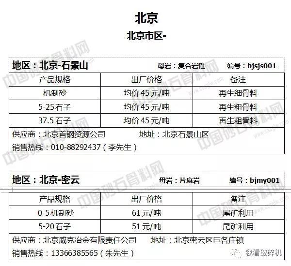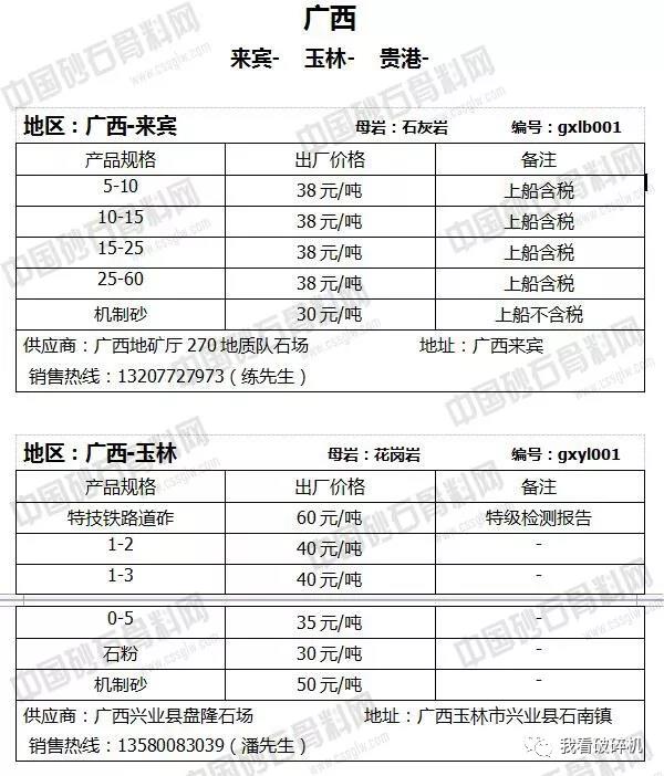 2018年7月下旬砂石骨料報價信息