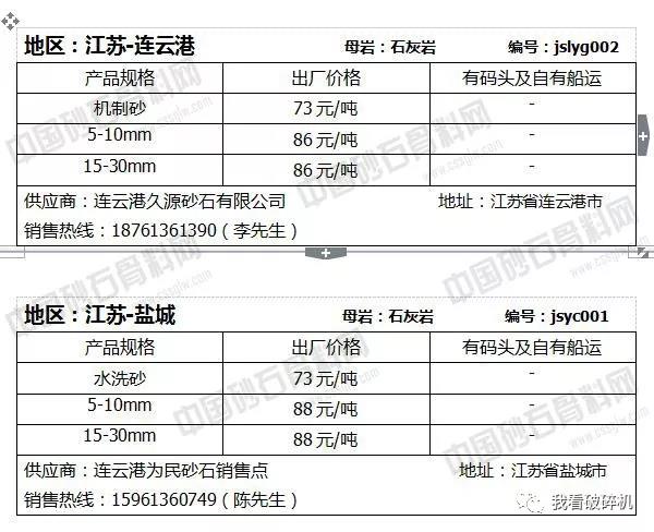 江蘇地區:蘇錫常砂石價格普遍下調2元/噸,連云港砂石價格相對持平,可能會有1元/噸左右的波動幅度。