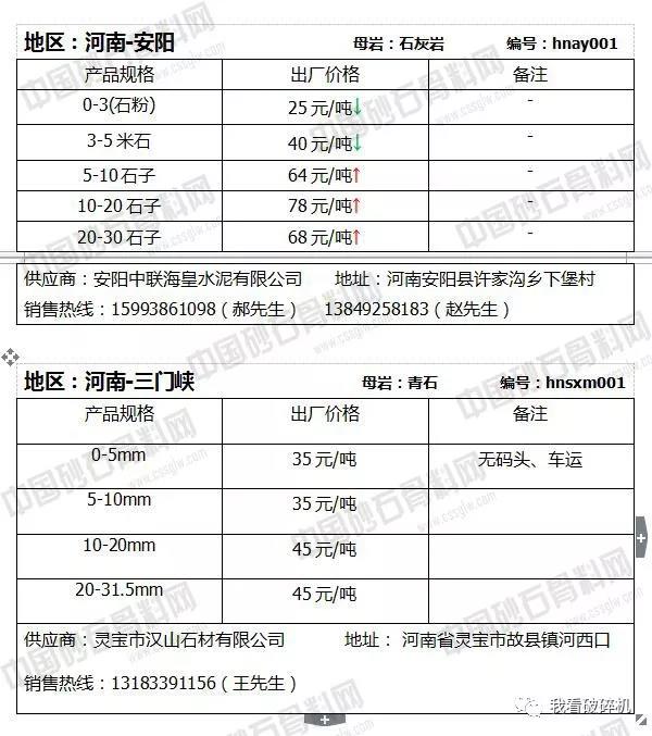 河南地區:安陽10-20石子價格上調19元/噸,10-20石子價格上調7元/噸,石粉和米石小幅下調1元/噸。