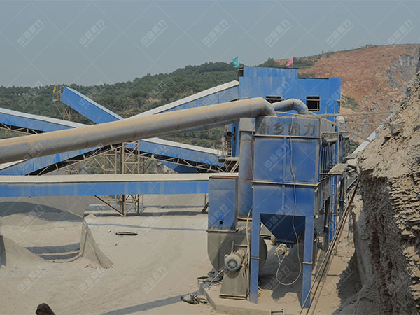 破碎后的砂石料需要歷經(jīng)排料口進入到傳送機上,由于喂料口及排料口之間有落差,具有有的砂石料流入到空氣中,此時,傳送機在運動過程當中,石粉也會隨之揚起,向周圍擴散。