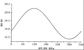 鄂破連桿傾角θ是指連桿軸線與定顎板面之間的夾角,我們根據上公式和已知條件可以可繪出隨曲柄運行角度θ變化的曲線如圖1所示。