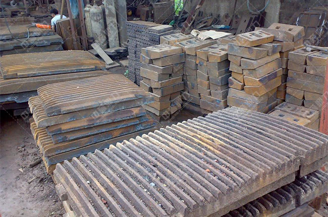 先是原材料選取:鄂式破碎機鄂板配件的材料可以選擇白口鑄鐵,白口鑄鐵莫氏硬度高、性較好、來源輕易、價錢優惠;不好是性脆、輕易斷裂、使用時間短,為了提高鄂式破碎機鄂板配件的使用時間,材料使用含錳12%以上的錳鋼,使用的是ZGMn13,錳鋼的不好是價錢較貴,但從使用時間、消耗等方面總體思考,ZGMn13比白口鑄鐵使用時間長、消耗低。