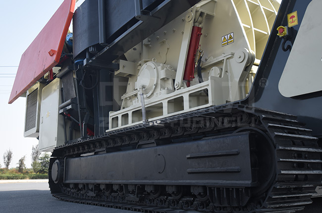 履帶式移動破石機:履帶底盤機架,會對路面造成損壞,不適合長距離運輸,但履帶抓地力強,可以爬坡,能適應各種復雜、惡劣的環境。可用于礦石、尾礦的破碎。