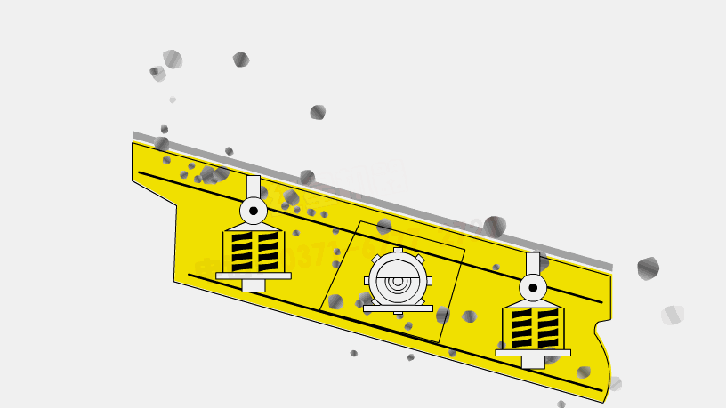 振動篩的運動是由電動機通過三角帶驅動具有偏心質量的激振器,從而使篩機做周期性的不對稱往復機械振動,使篩面上的物料層松散并離開篩面被拋起,使細級物料能透過料層下落,通過篩孔分離,并將卡在篩孔中的物料振出,細級物料向下部移動,通過篩網孔徑大小限制,實現篩選作業。