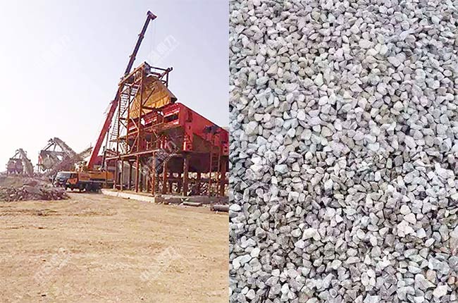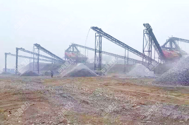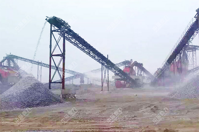 設備配置簡單,建設周期短,投資金額低是該項目的主要特點,整套生產線設備均安裝在室外,場地比較大,地勢平緩,土建難度較低,振動篩、石料輸送機等設備采用鋼結構支撐,因為沒有除塵措施,所以整條生產線在作業時灰塵比較大,如果后期需要環保生產,還可以加裝收塵設備。