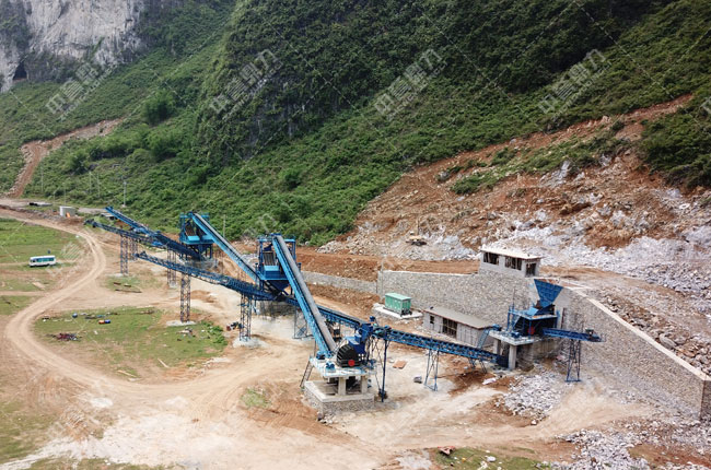 該項目位于廣西馬山縣,是一條新建的時產400-500噸的石料生產線,主要生產石灰石骨料,供南桂高鐵馬山段使用。