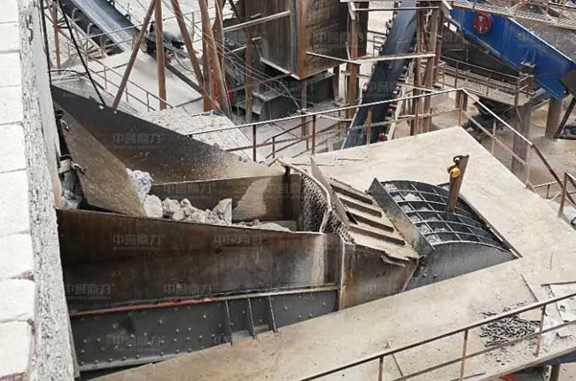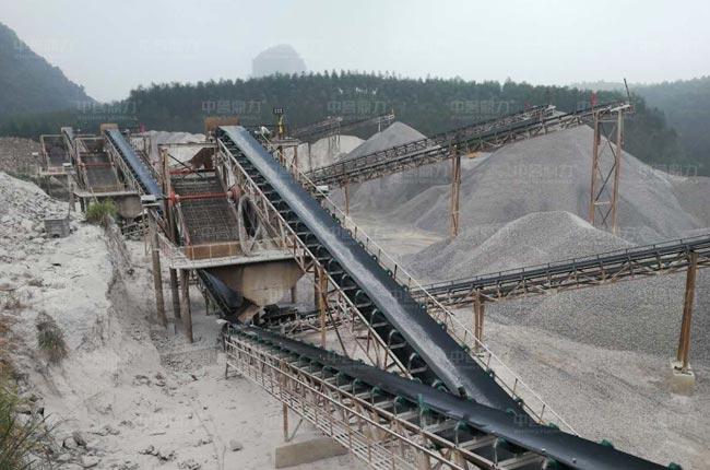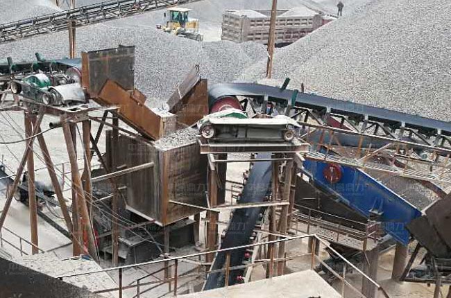 該套時產700-800噸的固定式砂石料生產線中的1615重錘式破碎機破碎比大,可一破成型,加上臨近設計整形破碎機,整個生產線流程設計合理,出料運輸通暢,操作運營方便,相比鄂破反擊破的配置,加工出的石料粒型好,成品質量高,石粉產出率低。