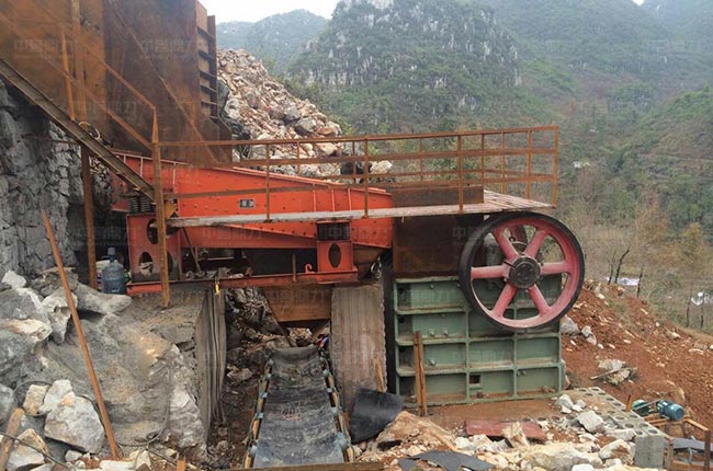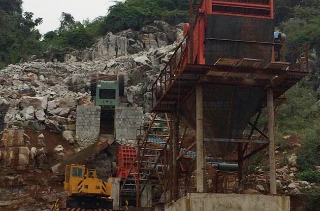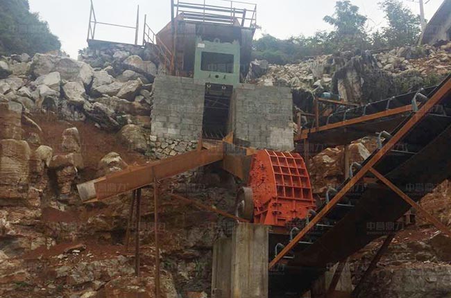 該項(xiàng)目位于廣西河池,選用時(shí)產(chǎn)100-160噸的PCZ1308重錘破碎機(jī)做二破使用,一臺(tái)4層YK2260振動(dòng)篩用于分選4種不同規(guī)格的石料。