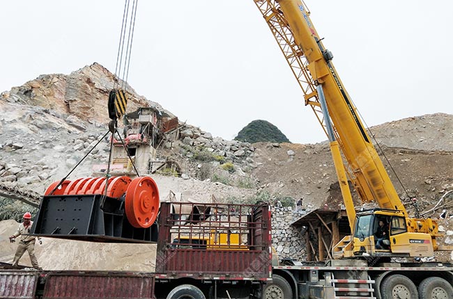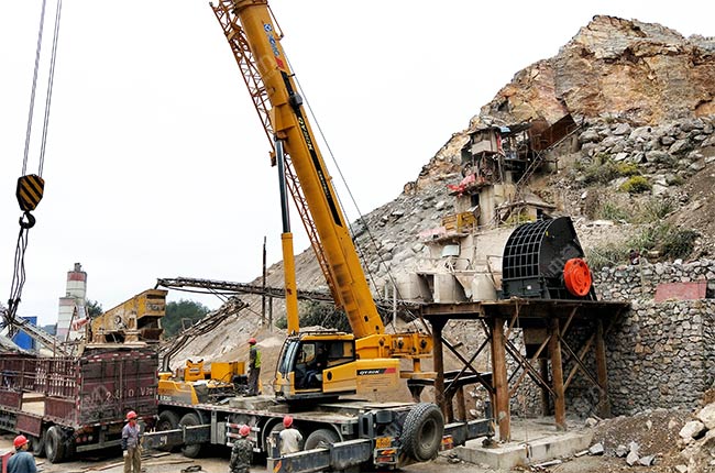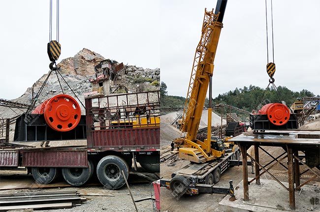上面是重型錘式破碎機從廠家到達安裝現場的圖片,從圖中可以看到,安裝地基已經建好,設備的主體部件正在吊裝。