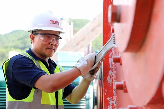 鼎力工程師現場檢查給料機、篩分機、制砂機等機制砂生產設備情況