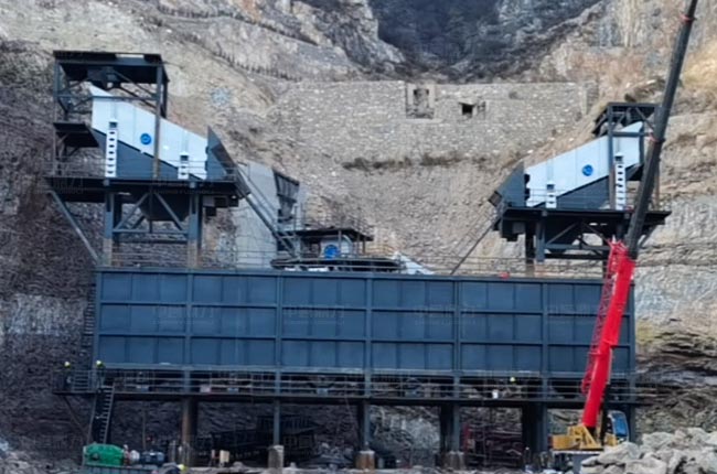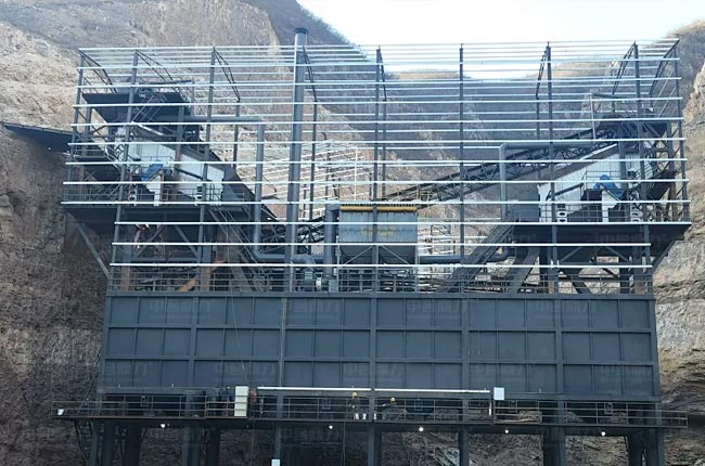 河北涉縣該項目立體式骨料生產線設計,具有生產結構緊湊,場地優化等特點。振動篩設備安裝于料倉頂部,大大節省安裝、輸送、結構等成本。