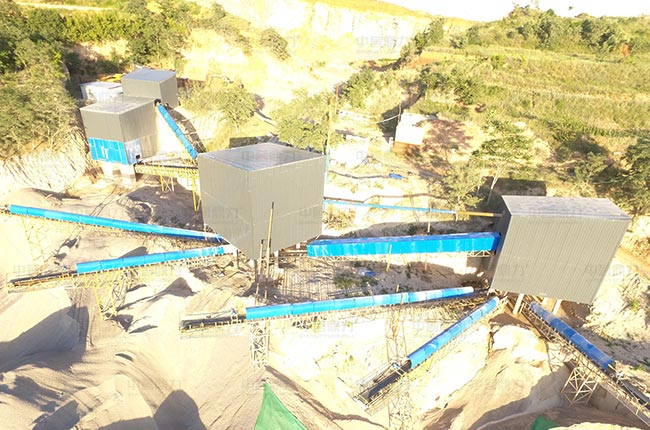 “給料、破碎、篩分”在封閉車間內,皮帶機也采用封閉設計,不論破碎生產還是石料輸送都控制粉塵污染,實現綠色生產。