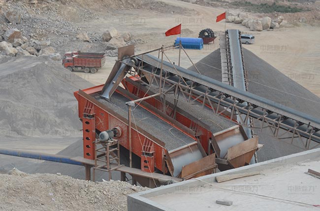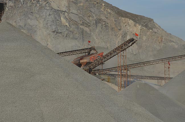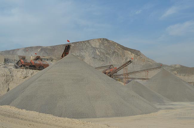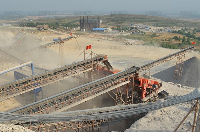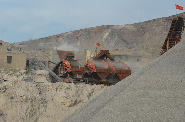 河南禹州時產600噸石子破碎生產線主要配置了一臺PCZ1615重型錘破和PC1216整形破,通過多層篩網的振動篩篩出粗、中、細等多種規格的骨料。