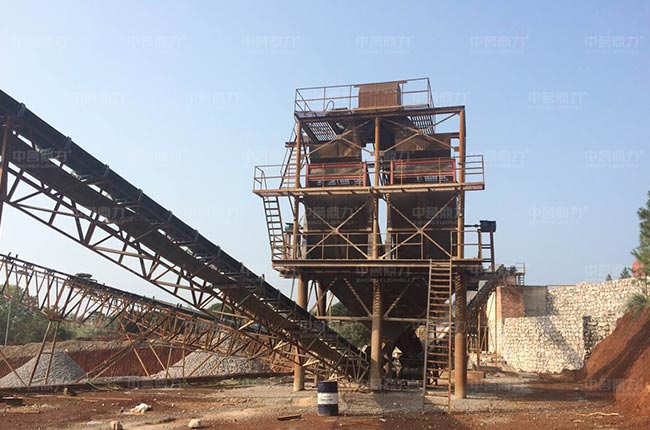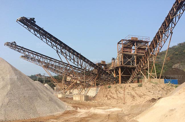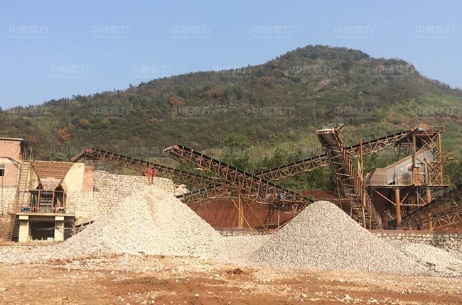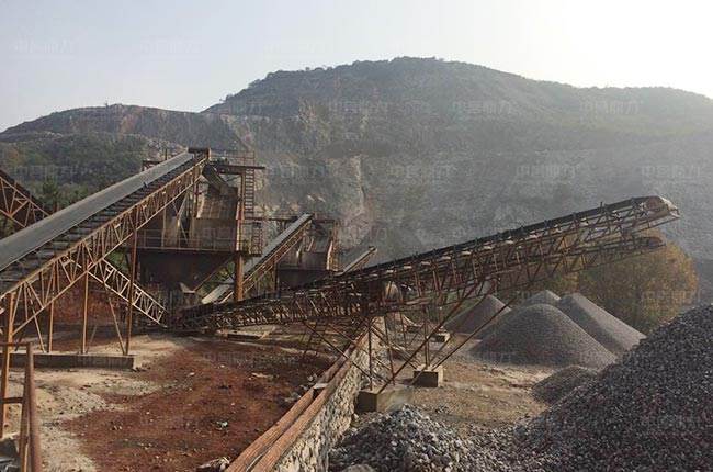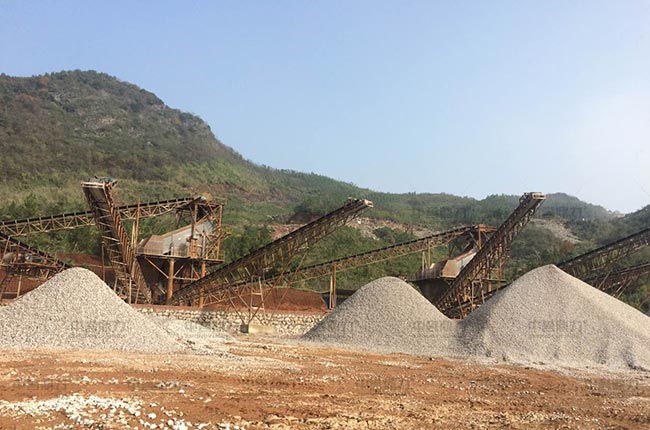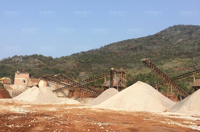 主要生產混凝土建筑用骨料,原料是石灰石、生產石粉、米石、5-10、10-20等規格的石料,選用一臺1615重錘破碎機和4臺YKZ振動篩,不需要二級破碎設備投資。