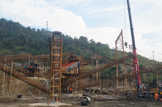 此套日產(chǎn)6千噸骨料生產(chǎn)線各主機(jī)設(shè)備搭配科學(xué),產(chǎn)量配置合理,可避免堵料、溢出等現(xiàn)象,生產(chǎn)線返料、混料、成品料皮帶輸送機(jī)分工明確,生產(chǎn)線日常維護(hù)也比較簡單,成品粒型好、品質(zhì)高,效益好。