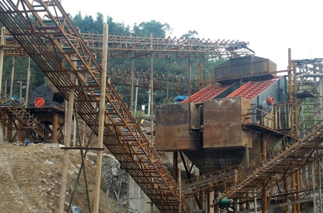 該項(xiàng)目2017年開工建設(shè),選用PCZ1615重錘破、PC1216整形破及配套設(shè)備破碎石灰?guī)r原料,生產(chǎn)石粉、0.5-1、1-2、1-3等石子骨料。