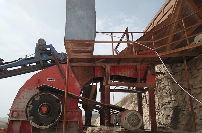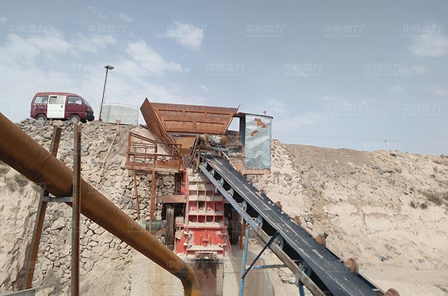 此項目位于寧夏萌城,時產300噸左右,給料機采用的是倉外給料機,一臺PCZ1512重錘破,原料破碎和回料破碎均由一臺設備加工,工藝簡單,且成品料大小可調節。