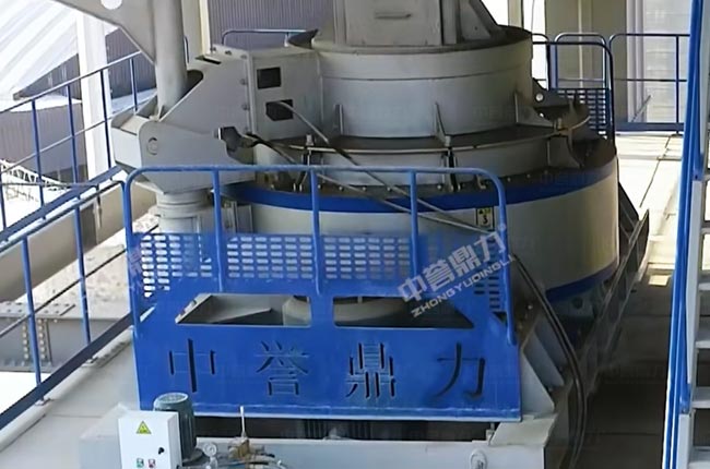 05料通過400提升機進入封閉皮帶機,進入沖擊破整形制砂,然后進入振動篩控制粒型,篩下料進入閉路循環選粉系統(先進靜態選粉機再進動態選粉機),篩上料通過提升機再次返回制砂機成型制砂。