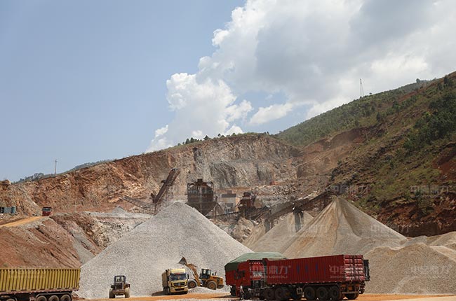 采用一臺一次成型的錘式破碎機,頭層石料會返回破碎機二次加工,破碎+篩分閉環流程使整個碎石加工工藝簡單,不論從產能還是成品品質都比反擊破更為突出,生產處的成品骨料在水泥攪拌站、基礎建設等應用更為廣泛。