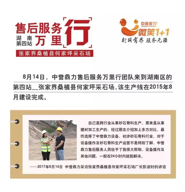 中譽鼎力湖南服務工程師郭學志說,對于初涉砂石骨料行業的用戶,中譽鼎力除了提供售后支持外,也會提供相應服務,比如行業情況講解,石料分析,生產線運行管理,設備操作培訓、保養培訓,不同自然天氣應對等,生產線運行正常,使用戶得到較高的率。