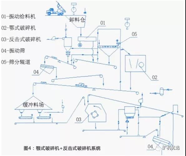 顎式破碎機反擊式破碎機和篩分系統組成,見圖4。
