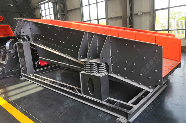 震動喂料機歸類于前段機械,它是原始玄武巖的儲存地,為了生產線的運用要求,它的進、出口需布置合理,這樣即可有用的玄武巖破碎機生產線在工作過程中的喂料速度達到額定程度。