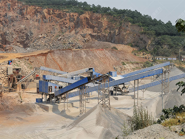 原料堆、ZSW490×110震動喂料機、HD98鄂破機、B1000×22米傳送機、HXHP300圓錐式破碎機、B1000×30米傳送機、B800×31米傳送機、4YK2460礦山振動篩、B500×15米傳送機(4臺)、B500×10米傳送機。