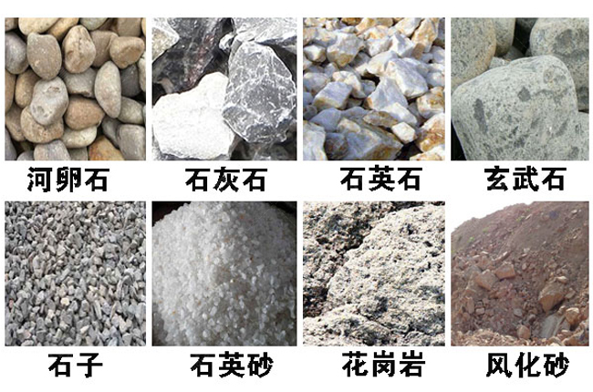 適合破碎生產石子骨料的物料有石灰石、鵝卵石、花崗巖、玄武巖、青石、建筑垃圾等200多種物料,根據物料的莫氏硬度可以劃分為硬巖物料,如鵝卵石、花崗巖、玄武巖等物料;軟巖(中低等硬度)物料,如石灰石、青石、建筑垃圾等。