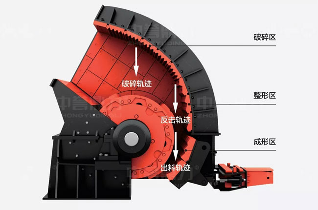 在物料進入箱式破碎機后,經(jīng)過高速旋轉(zhuǎn)的錘頭沖擊而進行破碎,破碎后的物料在錘頭處獲得動能,高速沖向破碎襯板,同時相互撞擊,經(jīng)過多次破碎,小于篩條之間間隙的物料,就會從間隙中排出,較大的物料在篩條上再次經(jīng)過錘頭沖擊,直到可以被排出。