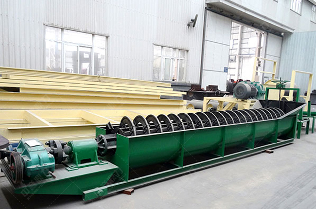 螺旋石粉清洗機的構造是臥式的,相對來講,占地空間較大,是利用螺旋葉片勻稱將物料分散開,借助固體粒形不同比重在液體中沉降速度不同來將雜物清理,清洗更加整潔,雜物少,脫水成效好,生產規模是單位時間5-240噸,洗沙的流失量小,分級成效好。