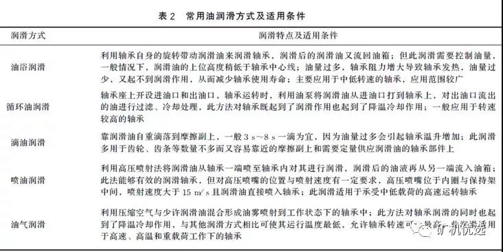 常用油潤滑的潤滑方式有油浴潤滑、循環(huán)油潤滑、滴油潤滑、噴油潤滑、油氣潤滑,其潤滑特點及適用條件見表2:
