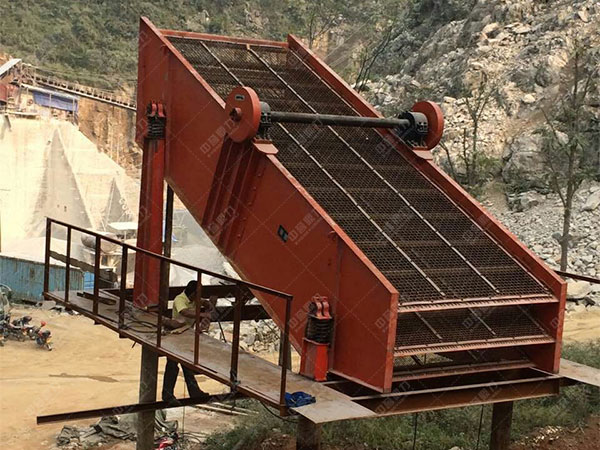 直線礦山振動篩送料口加裝傘形布料器能有用地阻止巖石聚堆,這一屬性是顯而易見的,送料口加裝傘形布料器能有用的使巖石在篩網表面不了勻稱,阻止了客戶在上料時巖石聚堆對篩網的壓迫以及重力勢能的損害, 直線礦山振動篩送料口加裝傘形布料器能大大代替篩選分級精度,因為曾經的直線礦山振動篩送料口沒有加裝布料器,客戶篩選分級巖石時聚堆,使得篩選分級進度達不到,而加裝了布料器的直線礦山振動篩能有用的依靠直線振動篩篩網表面面積,使巖石勻稱散布在曬面上,使巖石篩選分級進度大大提高。