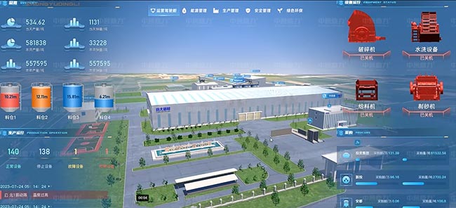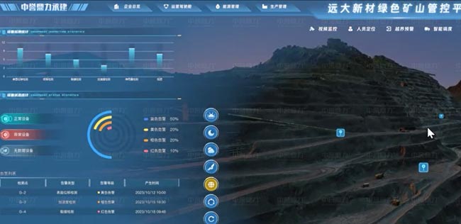中譽鼎力綠色礦山管控平臺(智慧砂石監管平臺),通過三維技術實時展現廠區全貌,實現對砂石線生產、設備運行、環保檢測等數據采集、集中規范展現,進而實現對砂石廠信息化、數字化、自動化深度融合,使整個礦山具有自我學習、分析和決策能力,達到砂石線的隱患、故障或風險的預警及防治。