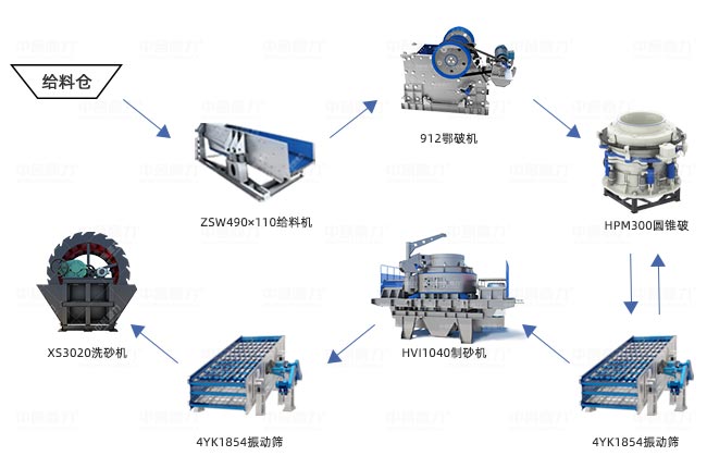 時(shí)產(chǎn)300噸鵝卵石制砂工藝流程圖